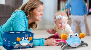 Elevate your baby's playtime with the Crawling Crab, a revolutionary toy designed to make Tummy Time and crawling experiences absolutely delightful. What sets this toy apart are its built-in infrared sensors, which possess a remarkable ability to detect obstacles and maneuver around them automatically.